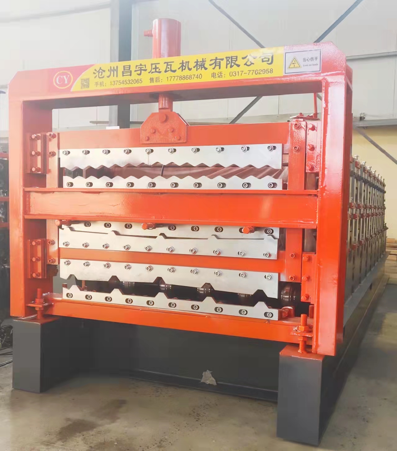 9、原料支撐架采用人工調(diào)節(jié)試,操作簡(jiǎn)便,適用0.25mm-0.8mm的彩涂板或鍍鋅板。