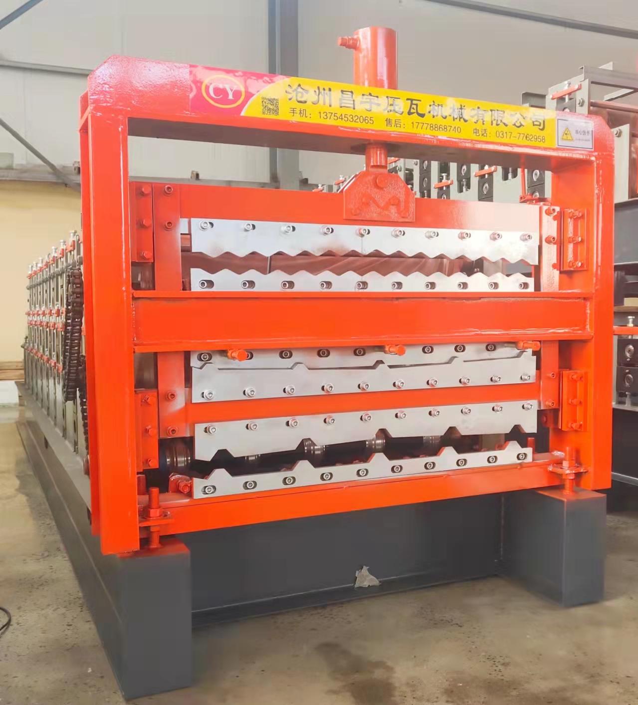 9、原料支撐架采用人工調(diào)節(jié)試,操作簡(jiǎn)便,適用0.25mm-0.8mm的彩涂板或鍍鋅板。