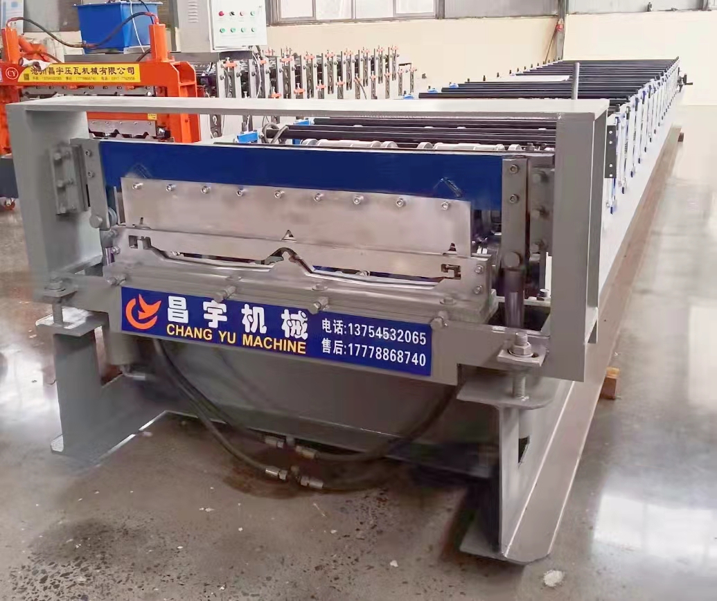 高空角馳成型機(jī)主要是由裝料架,進(jìn)料導(dǎo)入平臺(tái),成型主機(jī),成型剪切裝置,液壓泵站,電腦控制箱等幾部分組成。角馳壓瓦機(jī)生產(chǎn)的各種屋面板、墻面板和普通的屋面板、墻面板相比具有防滲漏性能,同時(shí)配合起拱機(jī)可以制作成無梁拱形屋頂。